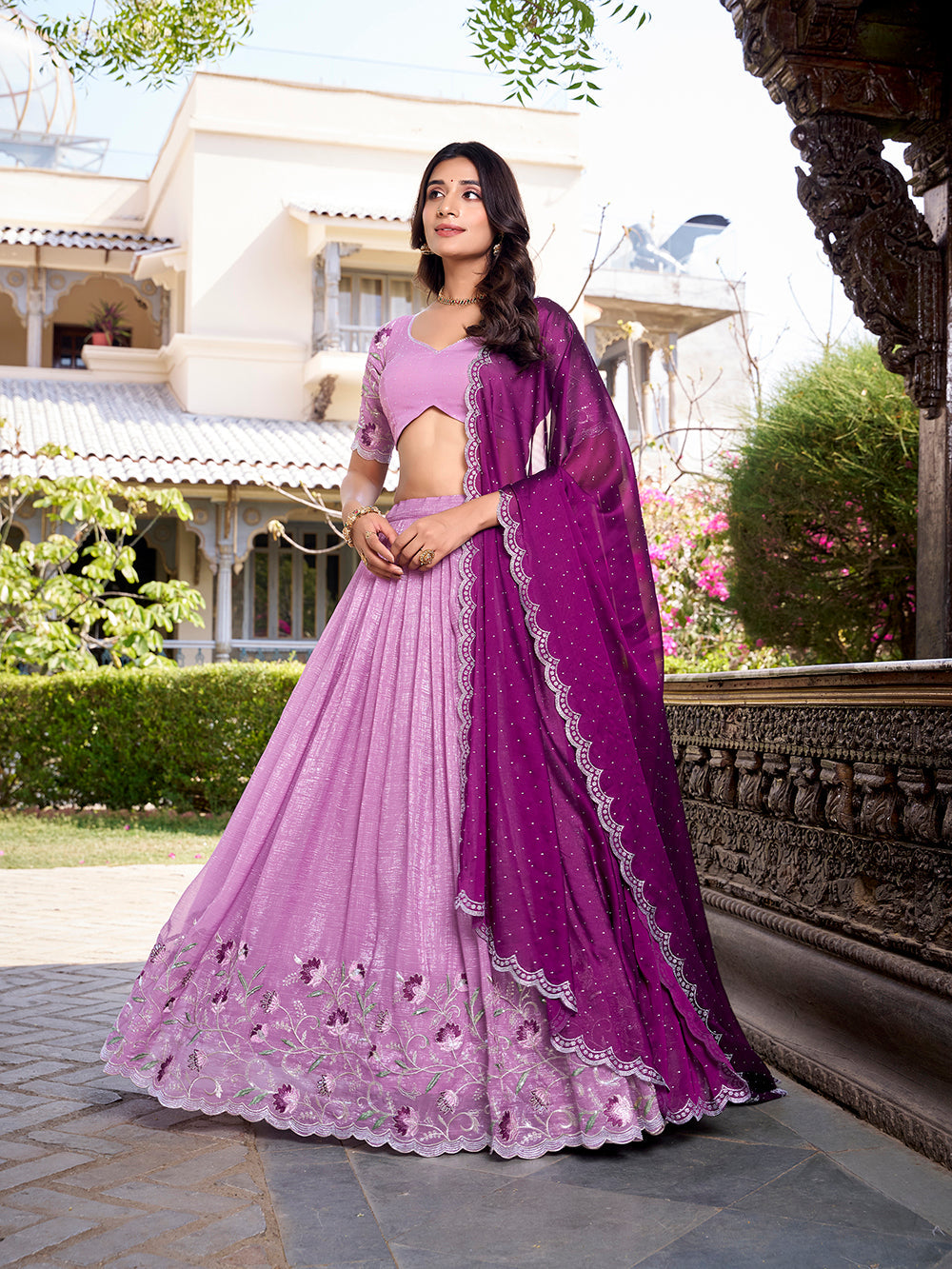 Lavender Color Sequins And Embroidery Work With Hotfix Silver Glossy Lehenga Choli