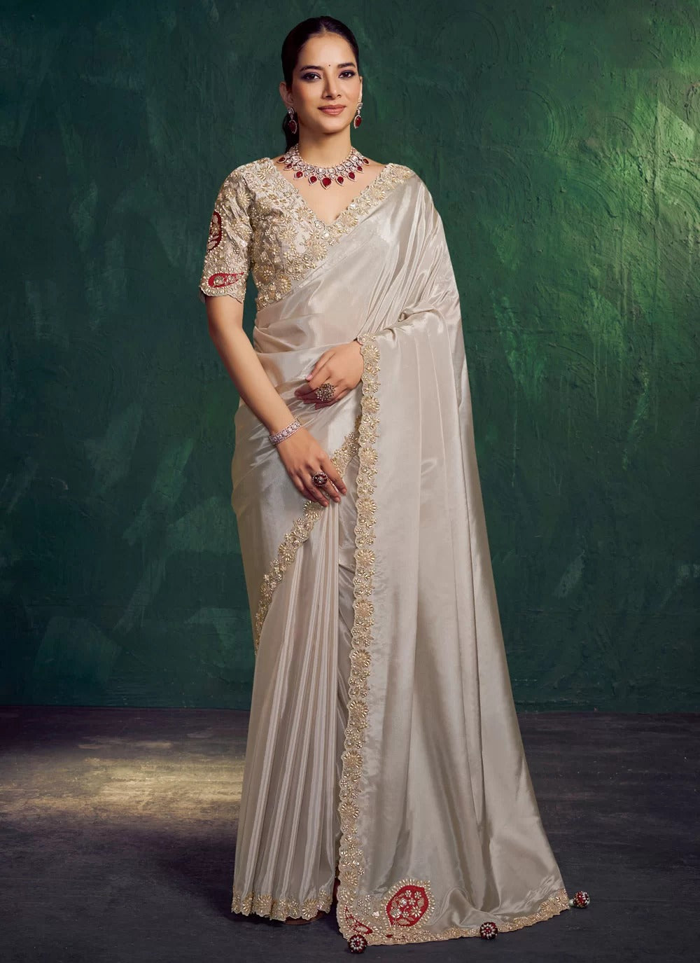 Intricately detailed with dual sequence accents, multi-stone highlights, and precise handwork, the design adds richness without overpowering the elegance of the silk. Unlike mass-produced sarees, this piece focuses on balance—allowing the fabric quality and workmanship to speak for itself.