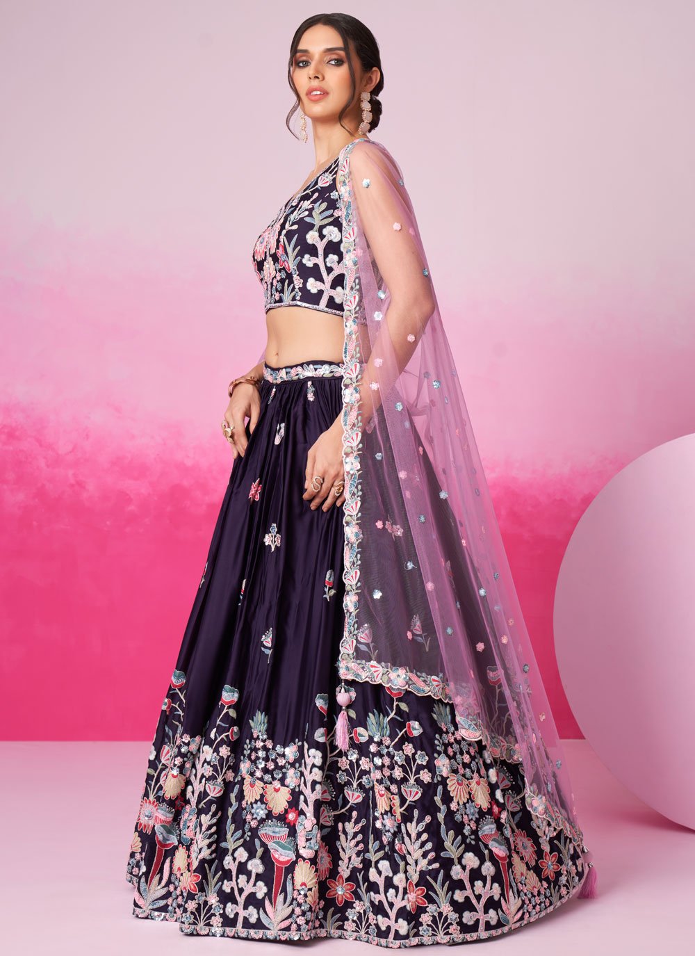 Elevate your style with this purple satin heavy embroidered lehenga, perfect for weddings, festivals, and Indian traditional functions. Crafted to offer a blend of luxury and comfort, this designer lehenga features high-quality satin fabric and intricate detailing, making it an ideal choice for wedding guests and bridesmaids alike. Here's why this lehenga stands out:
