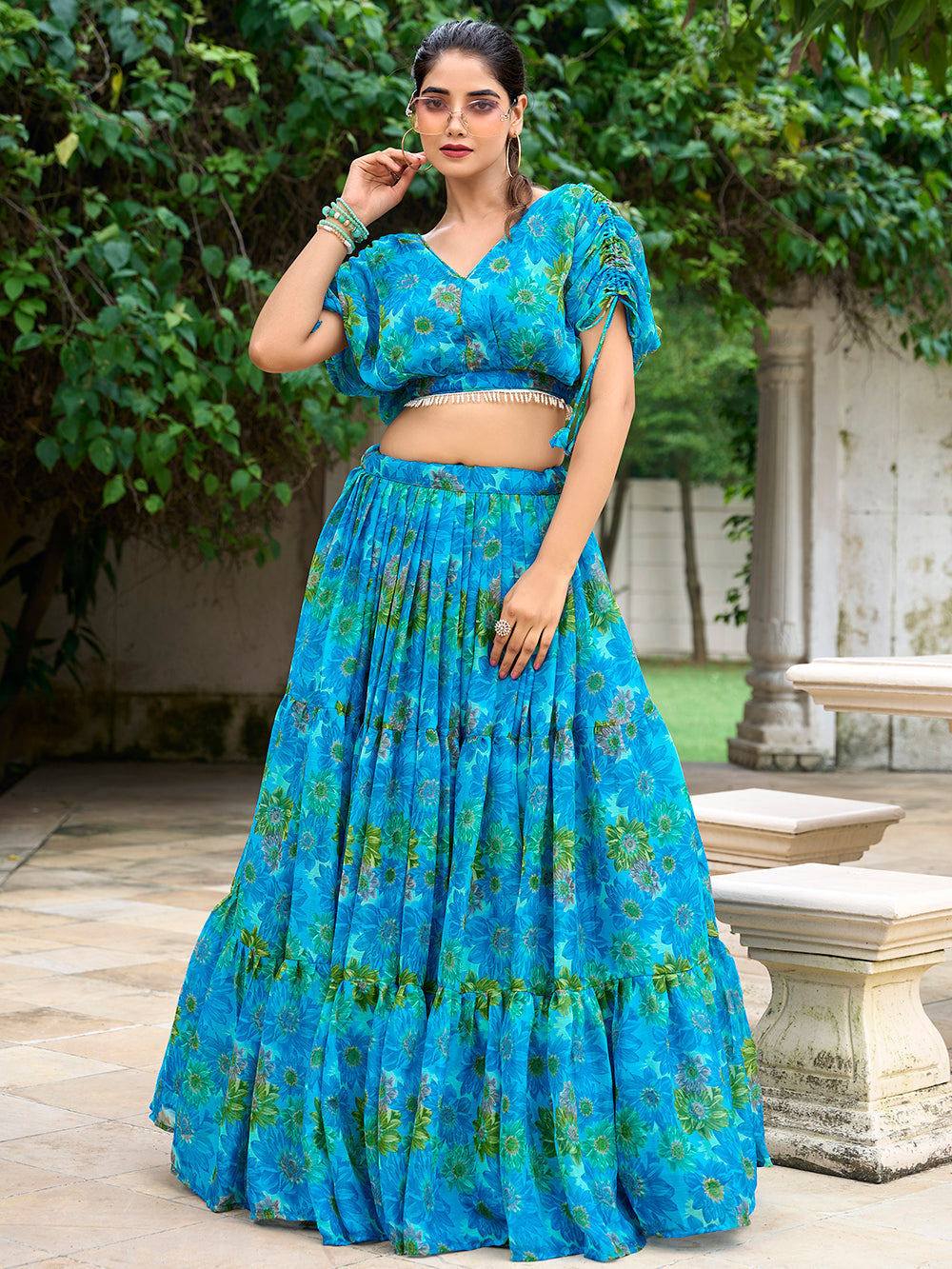 Sky Blue Color Floral Print Chiffon Co-ord Set Chaniya Choli